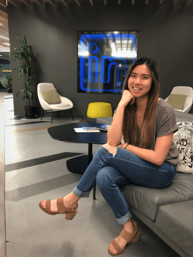 San Francisco: I mainly wanted to break this question into two parts really because I wanted to highlight how awesome working in the SF office was! #thecity🌁 First off, the LinkedIn SF office is based in the hip, tech-laden SOMA district of SF and is its own building with 20+ floors. It has its own dining floor, gym, and has rooftop patio where they host events like Happy Hour every Friday! (My favorite time of the week 😆 ). Secondly, is the culture itself. The SF office, unlike other non-HQ satellite offices has a huge mix of different teams that work there. Traditionally satellite offices are mostly sales offices, but the SF office also has tech/engineering, R&D, and marketing, to name a few. This made it feel like you were able to interact with all different types of people with different professions and also made for a livelier atmosphere (the city also attracts a certain type of person, which many of the folks working there also lived, if you know what I mean). So I felt really fortunate that I was able to get exposure to the different variety of teams and people at a tech company all in one building.